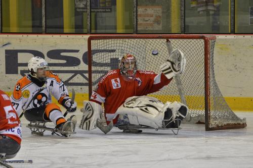 Sledge hokejisté porazili Pardubice. Zápas s Olomoucí se nedohrál