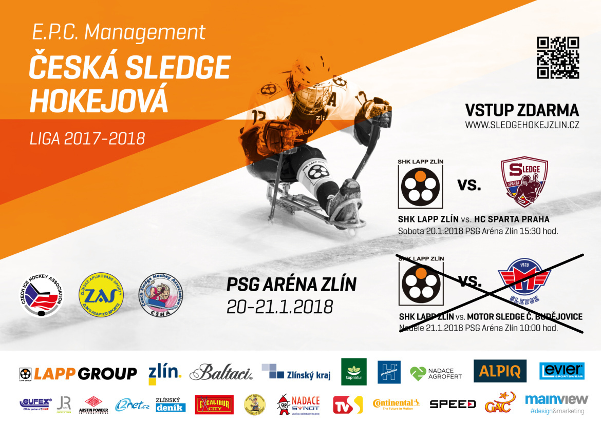 Poslední dva domácí zápasy sezóny čekají sledge hokejisty SHK LAPP Zlín. V sobotu zavítá na Moravu pražská Sparta, hraje se od 15:30 hodin. V neděli je na programu závěrečné kolo základní části od 10 hodin, Zlín se utká s Českými Budějovicemi.