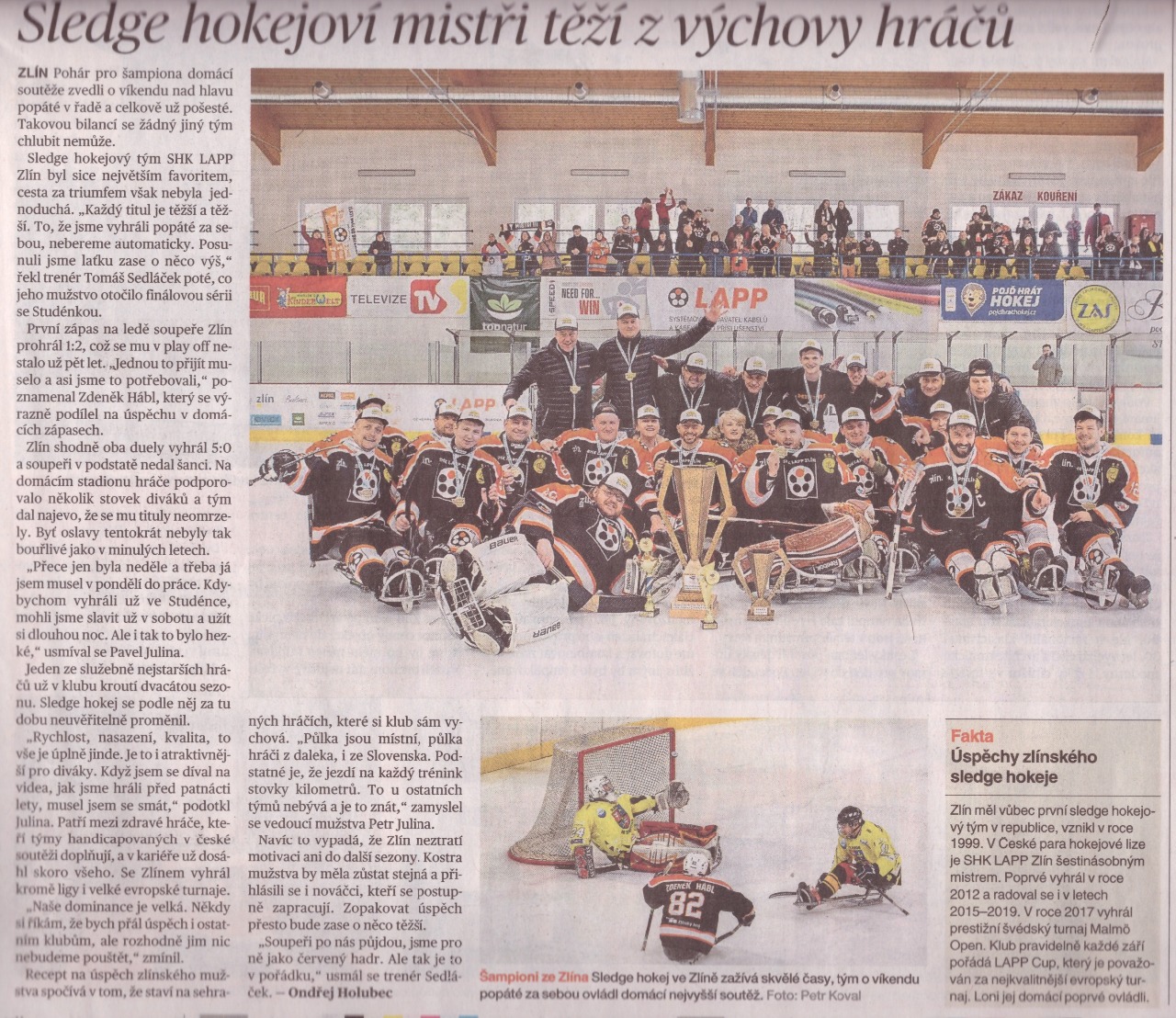 Sledge hokejoví mistři těží z výchovy hráčů