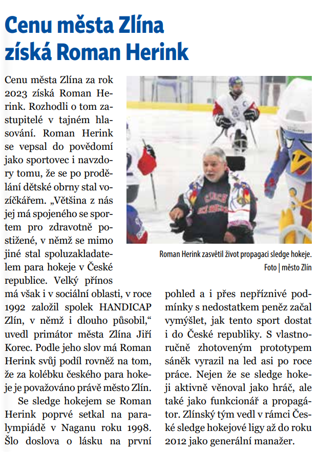 Magazín Váš Zlín : Cenu města Zlína získá Roman Herink