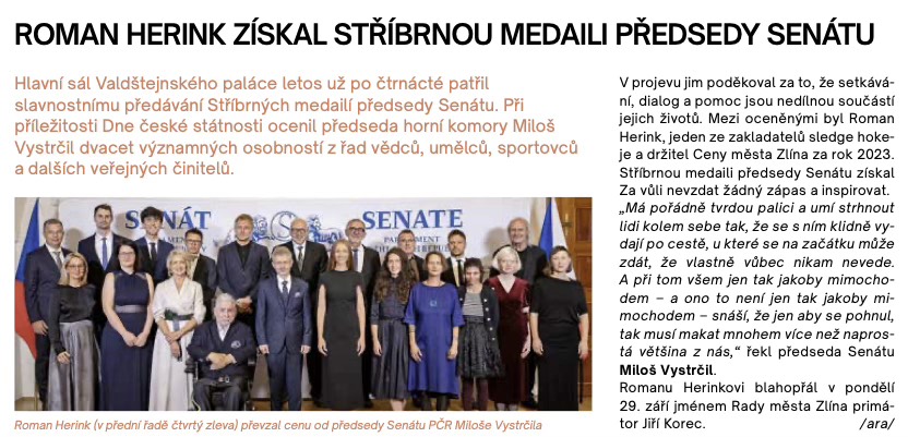 Magazín Zlín :ROMAN HERINK ZÍSKAL STŘÍBRNOU MEDAILI PŘEDSEDY SENÁTU