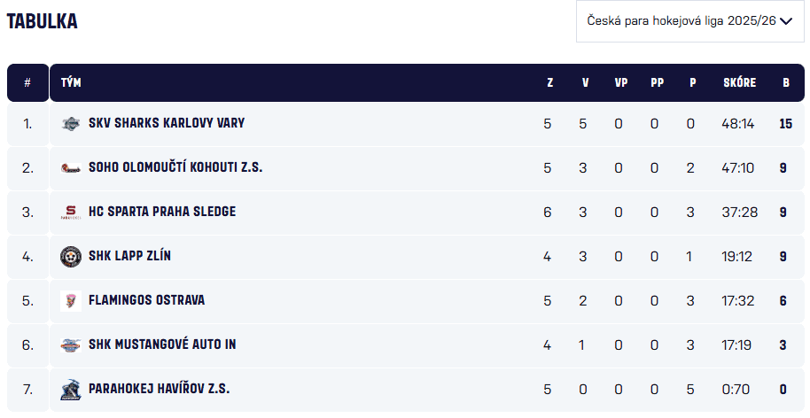 Dohrávané 3. kolo parahokejové ligy svedlo proti sobě Zlín a pražskou Spartu. Hosté třikrát vyrovnali, ale domácí na pomezí druhé a třetí třetiny odškočili do rozhodujícího trháku, hattrick zaznamenal Zdeněk Hábl. Po výhře 6:4 se Zlín na Spartu bodově dotáhl a má ještě dva zápasy k dobru.