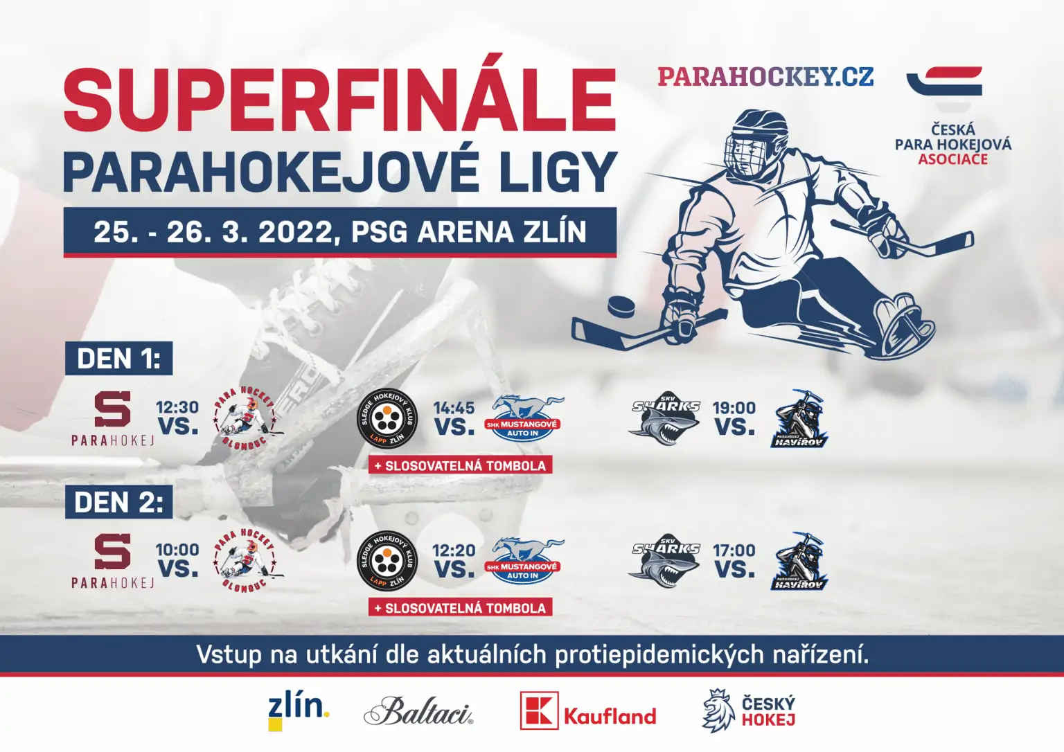 Necelé dva týdny po skončení zimních paralympijských her vyvrcholí také tuzemská soutěž. Česká para hokejová liga rozdělí vavříny za konečná umístění mezi svých šest celků při Superfinále hraném 25. a 26. března ve Zlíně. V PSG aréně budou soupeřit dvojice na základě tabulky po základní části, a tak o páté místo vyzve pražská Sparta Olomouc, o bronzové medaile se popere domácí Zlín s Pardubicemi a mistrovský pohár zvednou nad hlavu Žraloci z Karlových Varů nebo Havířov.